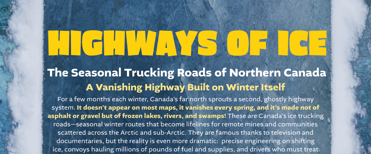 Canada's ice trucking roads remain among the most unusual transportation networks on Earth: built each winter anew, erased each spring, and entirely dependent on extreme cold.Read More